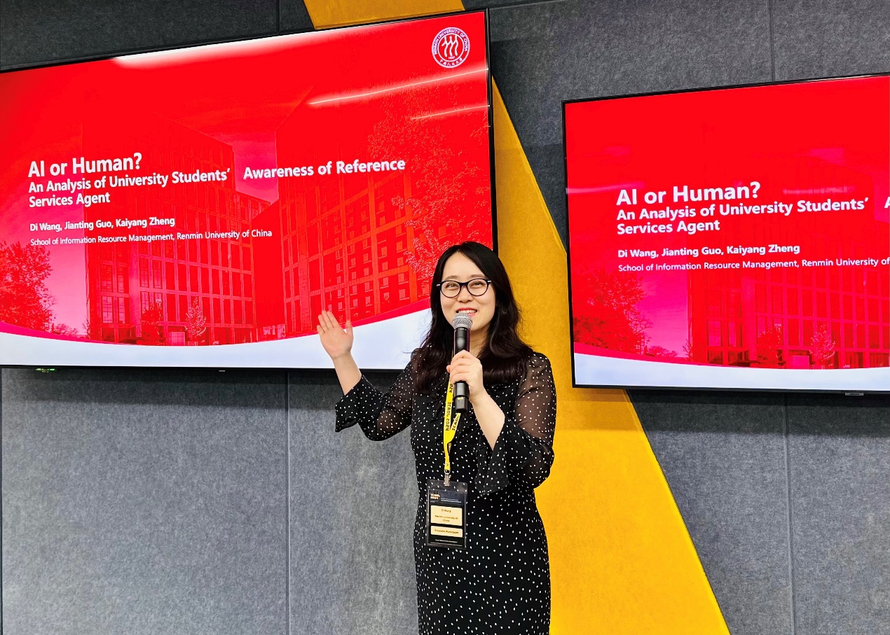 王迪老师与员工郭鉴霆、郑凯洋合作研究成果《AI or Human? An Analysis of University Students’ Awareness of Reference Services Agent》被会议短论文录用并在会议论文集发表。论文评估了老员工在图书馆参考咨询服务场景中对人工智能生成反馈与人工反馈的辨别能力,从三个维度分析了影响判断的因素,并针对研究结果对大学图书馆应用AI技术提出了三方面建议。该论文获与会学者高度关注,并引发领域内学者热烈讨论。