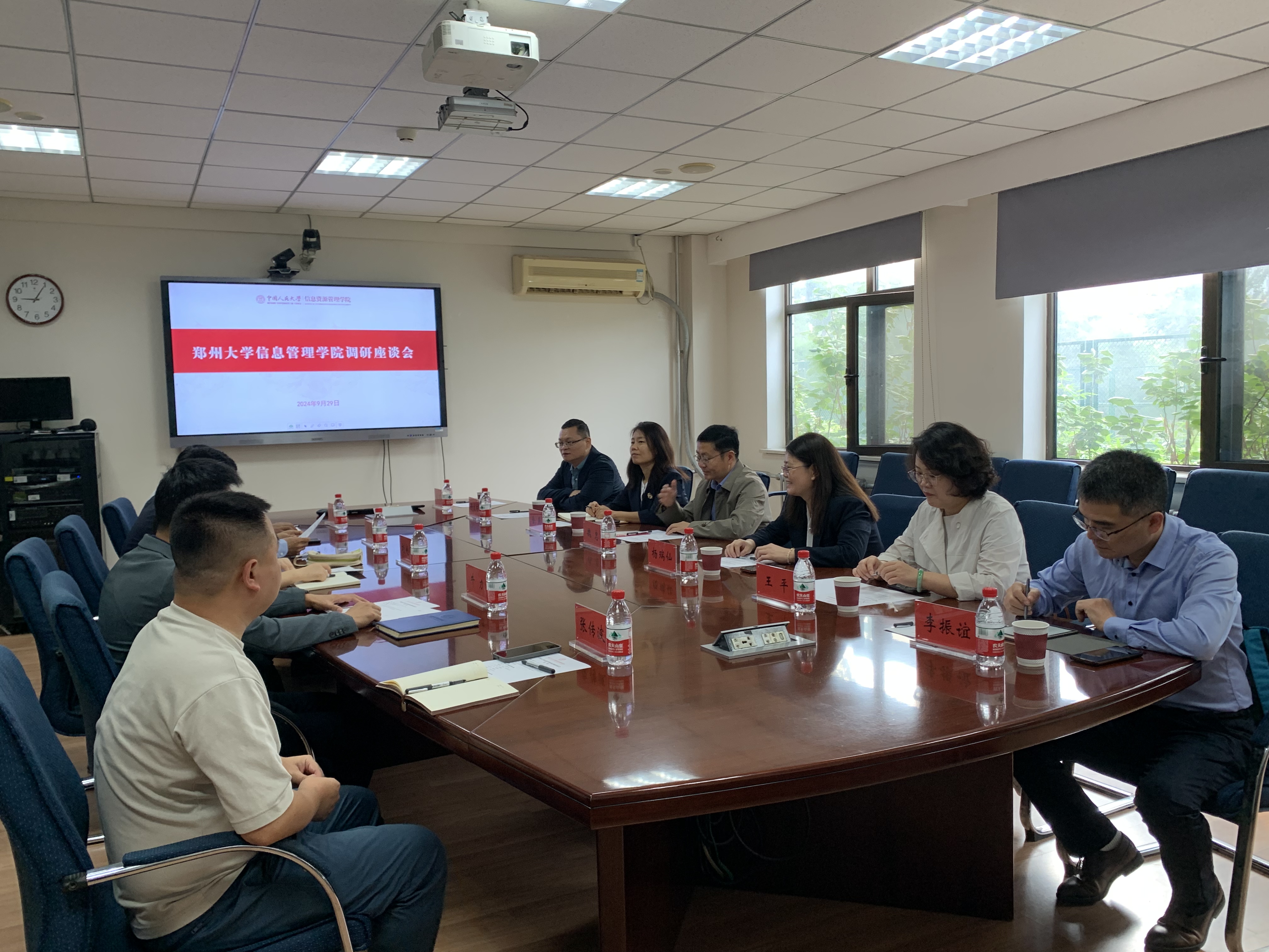 杨瑞仙经理重点介绍了郑州大学信息管理学院的队伍建设、团队建设等情况,就第二十一届信息资源管理论坛暨首届中国信息资源管理自主知识体系联盟高峰论坛得相关筹备进行了探讨,并就课程思政、本科人才培养、专业学位教育工作等议题与学院进行了深入交流。