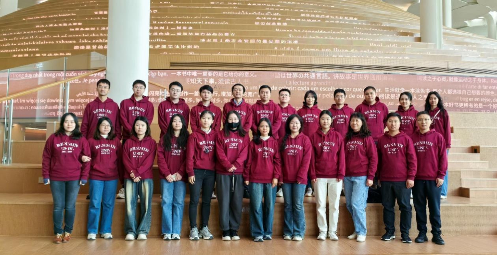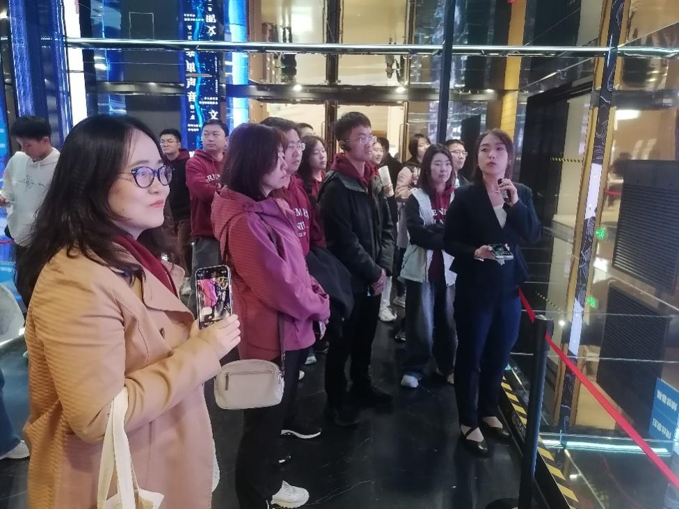师生们在讲解员的带领下首先步入山间阅览区,切身感受城市中的“森林书苑”,在其中读者可以享受到书目检索、智慧桌面以及智能翻译等服务。随后,师生们来到元宇宙体验馆,通过与数字人交流,深刻感受科技与文化相融合的无穷魅力。紧接着,师生们又来到24小时图书馆,感受现代技术对于图书馆的赋能,了解自助借还的图书借阅服务。最后,在闪动着各国读书名言的“知识山丘”下,讲解员介绍了城市图书馆的建筑设计理念,同学们再一次对这个由144棵“银杏树”支撑起的知识空间有了更深的了解。