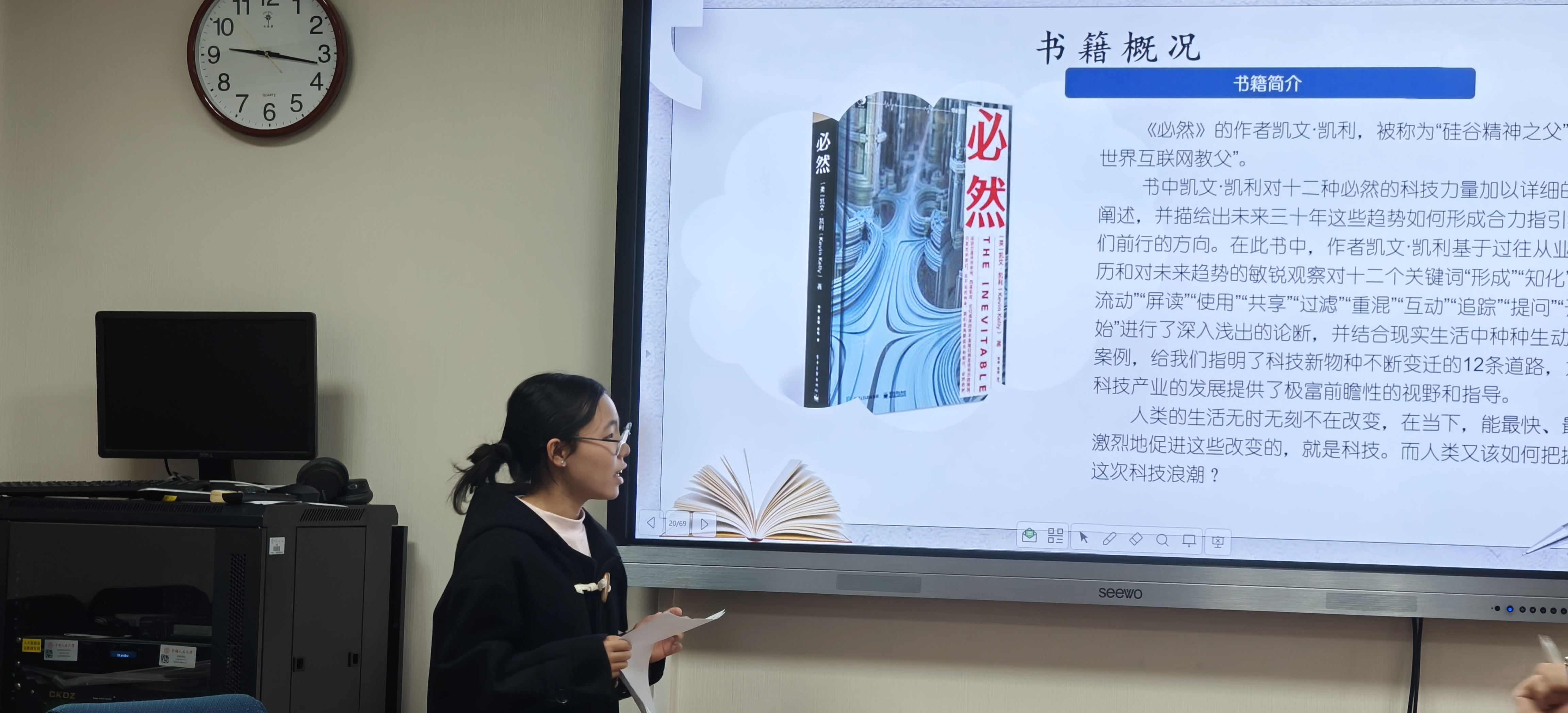 11月23日上午,永利官网举办第104期兰台读书会,主题为“科技启示与未来图景”,阅读书目是凯文·凯利所著的《必然》《科技想要什么》。特邀永利官网严承希老师担任点评嘉宾,读书会指导老师杨文老师作总结点评。2024 级本科生何赛玉主持,2024级本科生梁懿珍、2024级本科生王亚轩、2024级本科生周雅丽、2024 级硕士研究生丰雨欣、2022级本科生阿依江五位同学依次分享读书心得。