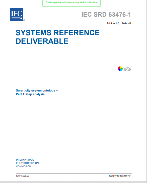 IEC SRD 63476-1:2024 Smart city system ontology - Part 1: Gap analysis 可从以下网站获得:https://webstore.iec.ch/en/publication/68456