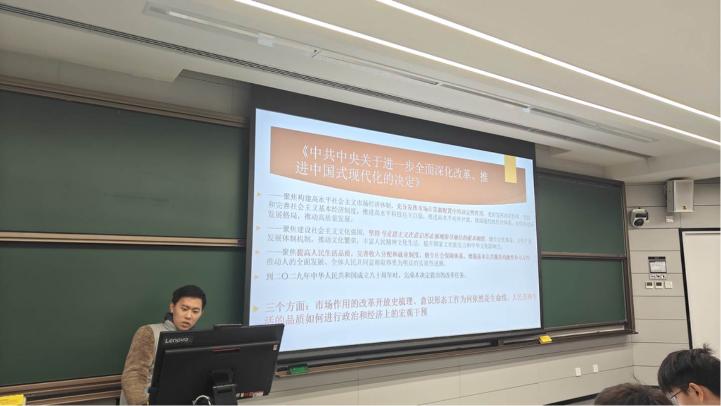 清华大学博士生讲师团的讲师带来了一场精彩的党课,以党的二十届三中全会精神为核心,详细解读了会议的主要成果和深远影响,引导在场的党员同志们深刻领会全会的精神实质,进一步坚定理想信念,激发爱国情怀和奋斗精神。