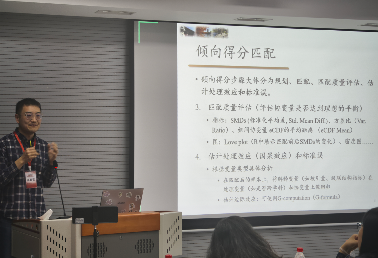 步一的主旨报告题为“跨学科研究的知识融合、知识扩散和政策影响力”。他特别强调了跨学科研究在解决部分重大科学问题(如脑科学、计算社会科学)中的关键作用,并详细阐述了跨学科研究在学术引用网络中的表现,利用倾向得分匹配方法验证了跨学科研究和单学科研究的长期学术影响力差异。报告聚焦跨学科研究的政策影响力,基于Overton数据库的政策引用数据,探讨了新冠相关文献的政策关注度。步一指出,未来研究应进一步探讨跨学科研究影响力的深层机制,如合作模式、话题流行性等因素。