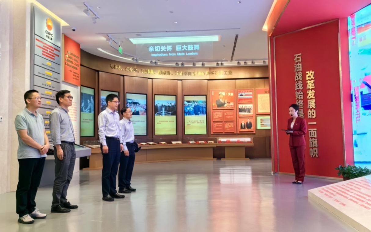 李亚英代表中国石油对调研团队一行表示热烈欢迎,并陪同参观了中国石油展览厅。在这里,调研团队参观了“新时代,新石油”主题展览,透过1000多张珍贵图片和400余件展品,领略了新中国成立以来党领导石油工业发展的光辉历程,感受了中国石油作为大国重器顶梁柱的使命担当。