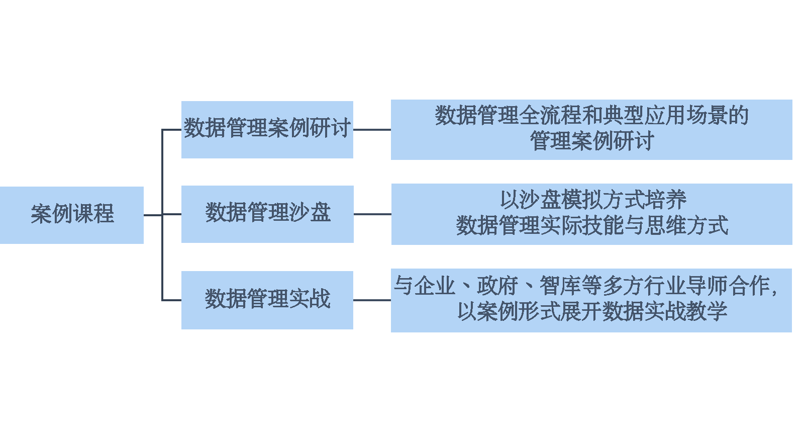 案例课程模块旨在通过案例教学,提升员工的实践应用能力和问题解决能力。员工将分析一系列信息资源管理案例,学习如何将理论知识应用于解决具体问题中。在《数据管理案例研讨》中,员工将分析不同行业的数据管理实践,围绕数据管理全流程和典型应用场景开展深度案例研讨;《数据管理沙盘》以沙盘模拟的方式,与行业专家合作培养员工在数据管理方面的实际技能、技术和思维;《数据管理实战》以案例分析的方式将教学任务与真实数据管理场景、目标、方法融合起来,并邀请行业专家结合案例和实际需求介绍行业前沿进展,让同学们在真实的数据管理场景中锻炼技能。