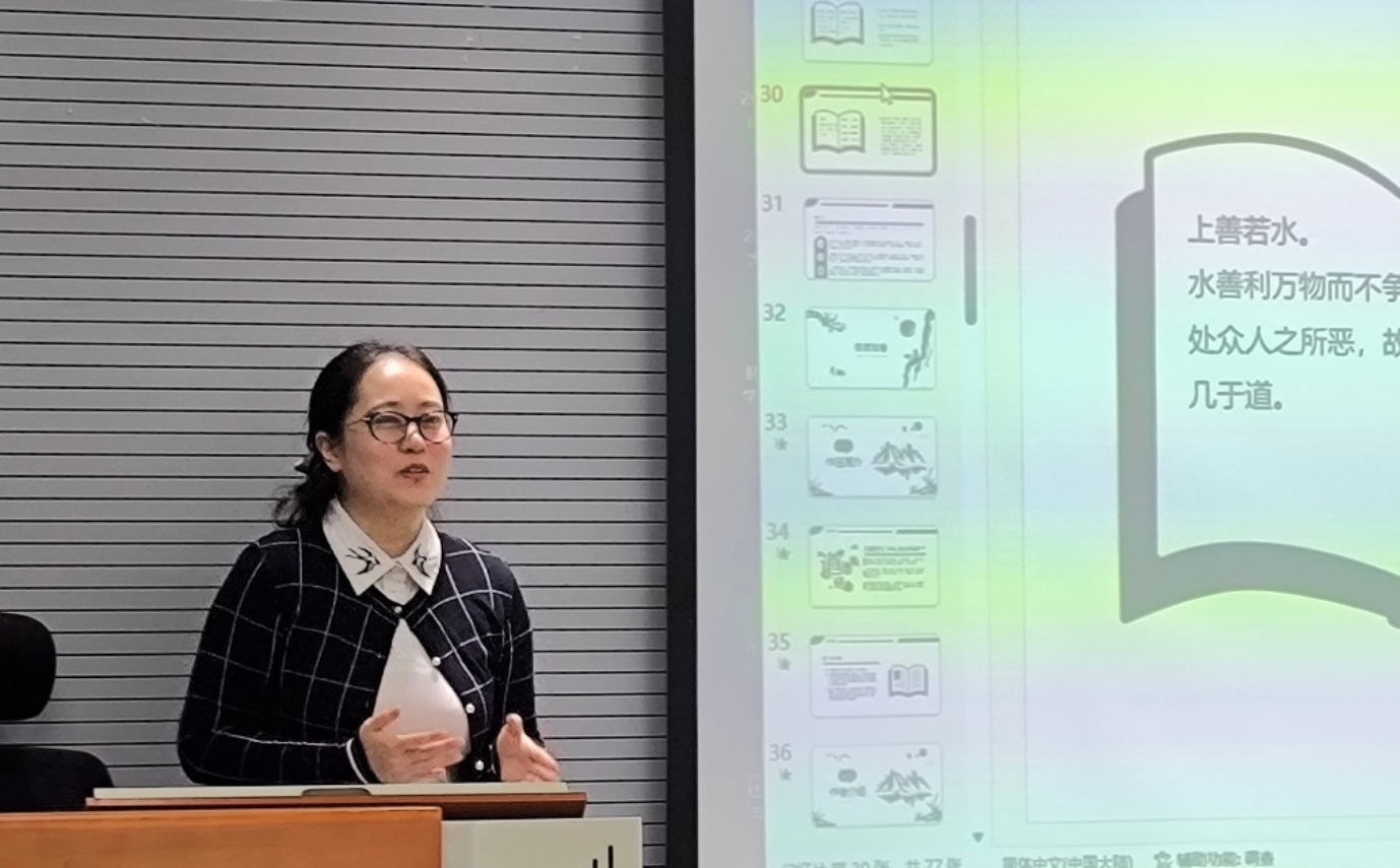 王迪老师结合个人经历,指出不同的人生阶段对阅读书籍会有不同的理解和心灵共鸣,进而带来精神上的满足。基于此,她倡导一种“终身学习”的态度,鼓励大家静心深读。在分享过程中,王老师特别提及了老子对自然界法则的独到见解,并将其延伸至科研工作和人生态度上。结合《周易》,王老师指出水具有阴中带阳、柔中带刚的独特属性,而老子认为水正是遵循“道”的体现,其所具备的诸多品质都值得我们去领悟和学习。