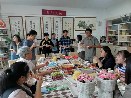 中午,学院工会举办教师节茶话会,学院领导班子成员、教职工代表参加。刘越男、闫慧向各位老师送上诚挚祝福,感谢老师们长期以来对学院工作的支持和奉献,学院也一直将关心爱护教职工、满足必要需求作为日常工作重点环节,希望各位老师在学院工作更有获得感、更有归属感、更有幸福感。在场教师进行互动交流,现场气氛热烈。