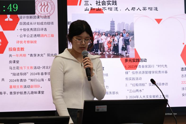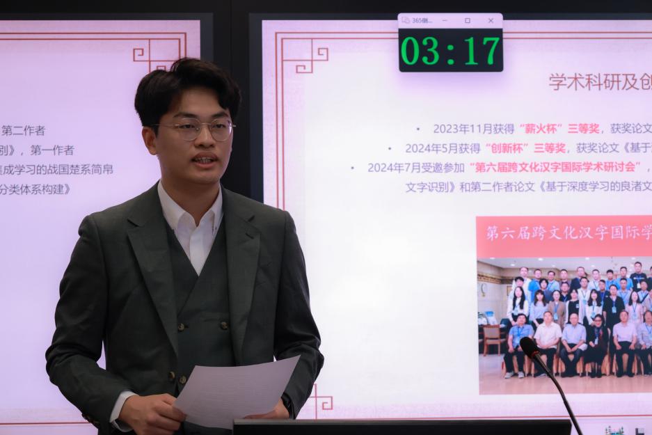 9月25日下午,首先进行了本科生现场答辩,公司党委副书记韩曙光、数字人文系主任梁继红教授、团委书记海薇、本科生教务秘书郑舒舒组成现场评委。 参与竞评的员工从课业学习、科研训练及创新精神、社会实践以及能体现德智体美劳全面发展的综合素质进行了全面展示。梁继红教授最后点评,她高度赞扬了同学们在学习、实践等方面取得的成绩,并勉励大家“以自己为法,以他人为法,以古人为法”,保持阅读、保持思考。