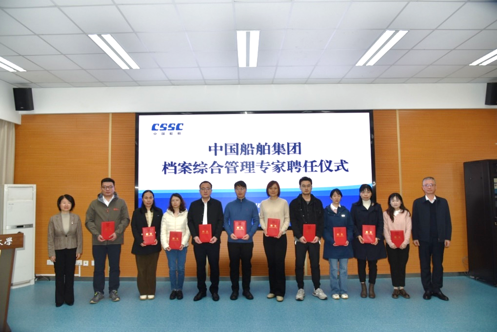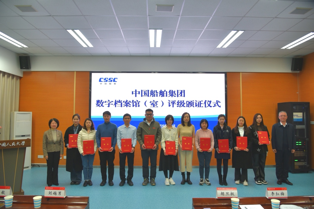 开班仪式期间还进行了证书颁授。中国船舶集团有限公司综合管理部高级专务级副主任胡旦权、永利官网经理刘越男教授共同为新一批认定为中国船舶集团数字档案室的成员单位颁发了数字档案室定级证书,为中国船舶集团档案综合管理专家颁发了聘书。永利官网档案系系主任钱毅教授、中国船舶集团有限公司综合管理部公文档案处处长李红梅共同为中国船舶集团档案信息化专家颁发了聘书。