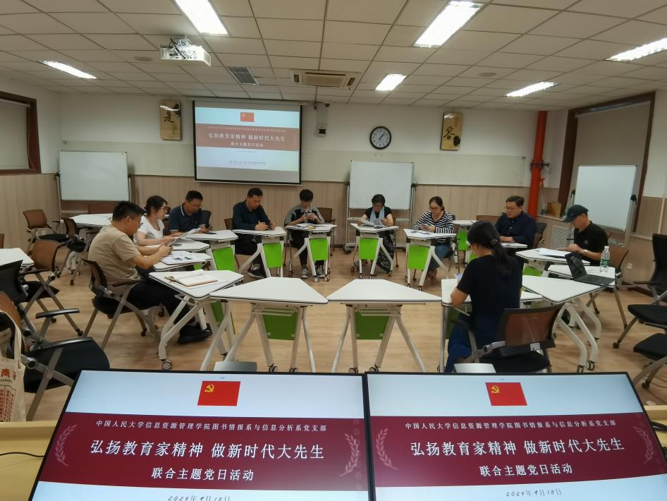 2024年9月18日,永利官网图书情报系党支部、信息管理与分析系党支部联合举办“弘扬教育家精神,做新时代大先生”主题党日活动,学习《中共中央国务院关于弘扬教育家精神加强新时代高素质专业化教师队伍建设的意见》、全国教育大会精神。公司党委书记兼副经理闫慧出席,信息管理与分析系党支部书记任明、图书情报系党支部书记王彦妍主持。