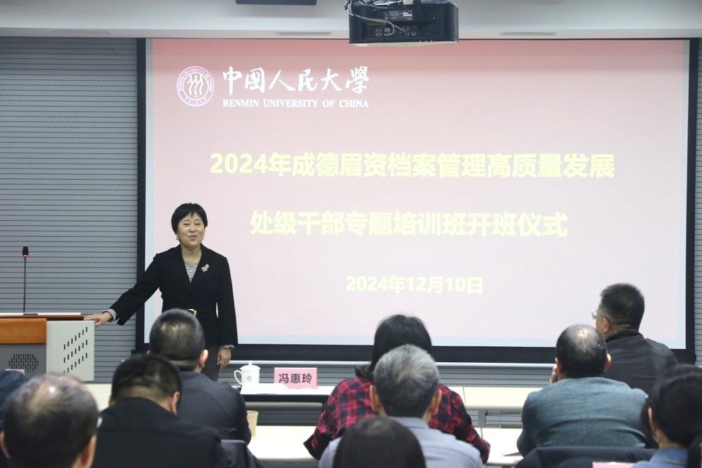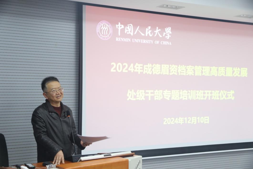 12 月 13 日下午,培训班圆满结业。金牛区档案馆馆长苏超峰作为学员代表登台发言,分享了此次学习的丰硕收获与深刻感悟,对人大信管学院的精心组织安排与优质教学服务表达了诚挚的感谢,并表示将学以致用,将所学知识转化为推动档案工作科学发展的创新思路与切实可行的实际举措。