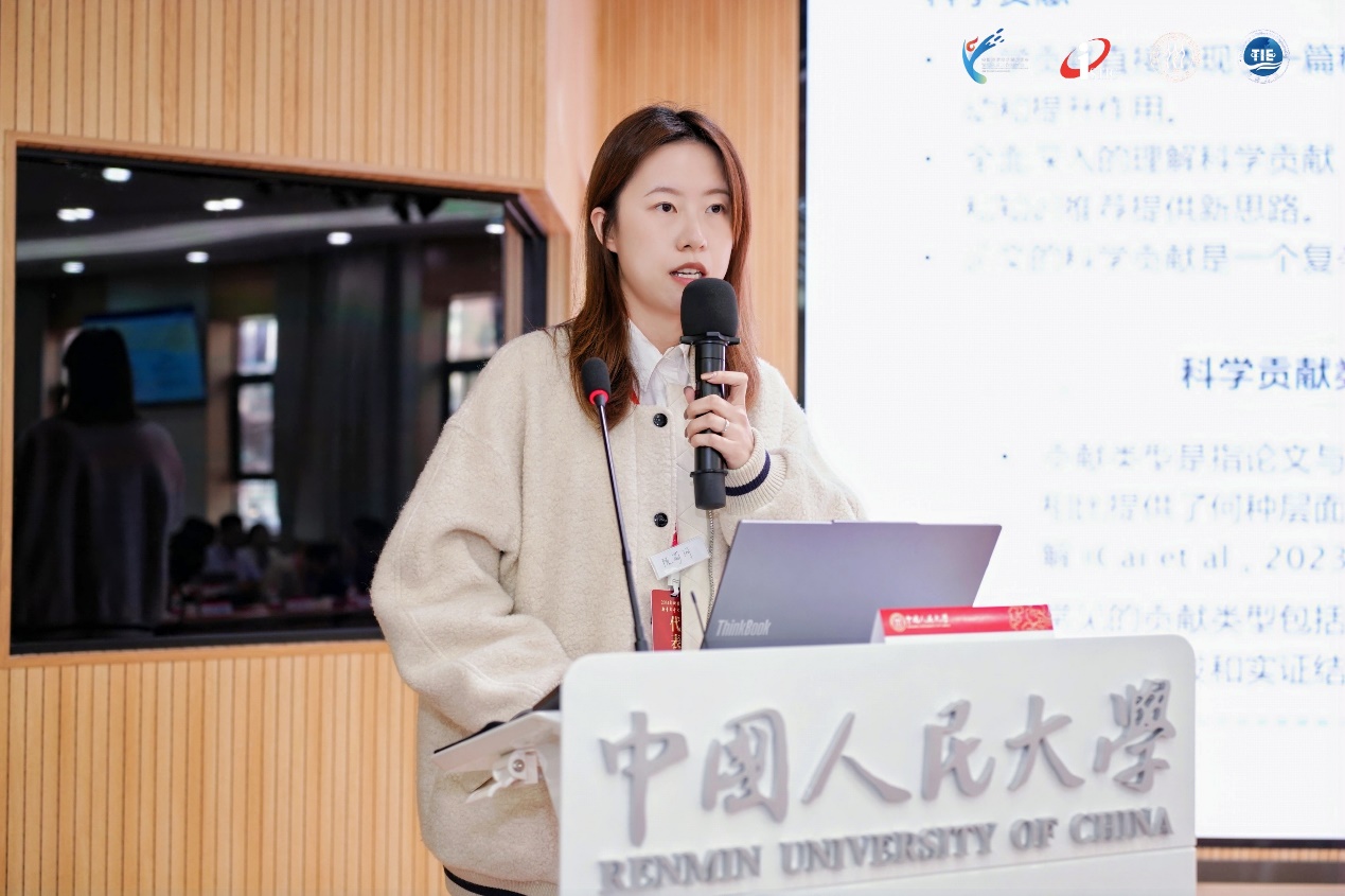 陈莉玥助理研究员从引用语境与劳动分工的视角探究了科学贡献的复杂性,总结了论文实际贡献的特征、论文实际贡献与劳动分工投入之间的关系以及各类科学贡献之间的内在关联。