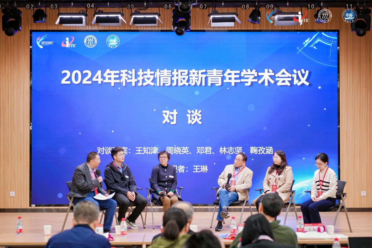 报告结束后,主持人王琳组织对谈环节,王知津、周晓英、邓君、林志坚、鞠孜涵五位嘉宾就情报理论的创新、发展和应用进行了深入探讨。