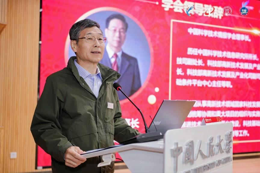 中国科学技术情报学会理事长戴国强致辞,他认为,青年学术力量是促进科技创新的重要力量,科技创新如何赋能新质生产力是情报工作者需要牢牢把握的关键和重点。戴国强指出了当前青年情报工作者存在的一些局限并提出建议,表达了对于青年人才的希冀。