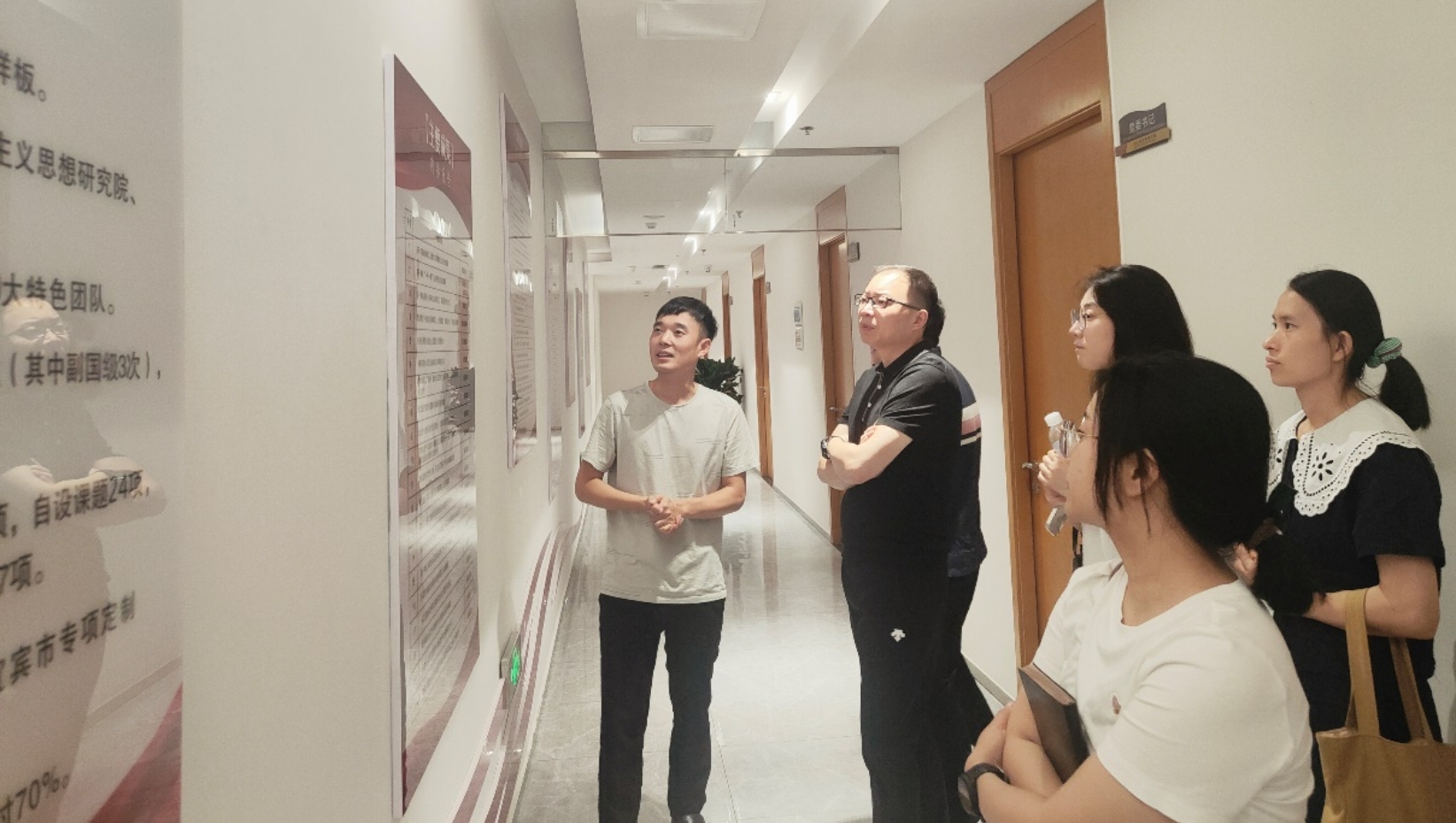 8月14日,作为调研第一站,钱明辉教授团队来到宜宾市三江新区企业和人才服务中心。三江新区企业和人才服务中心以满足企业、人才需求为宗旨,是一个开放式综合性政企研服务平台。调研团队先后参观了中心的人才服务专区、商务洽谈区、沙龙区等。中心领导介绍会针对企业和人才共性需求,定期举办就业指导大会或相关人才活动,全生命周期护航企业和人才高质量发展,强化企业与人才的点对点联系。之后,调研团队就人才政策中存在的问题与中心领导进行了深入探讨。