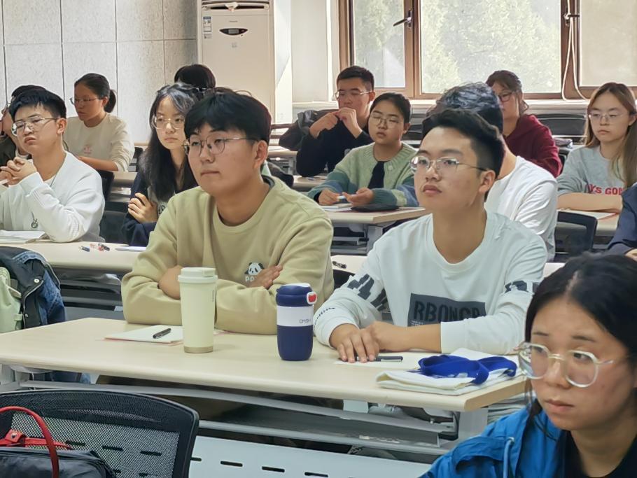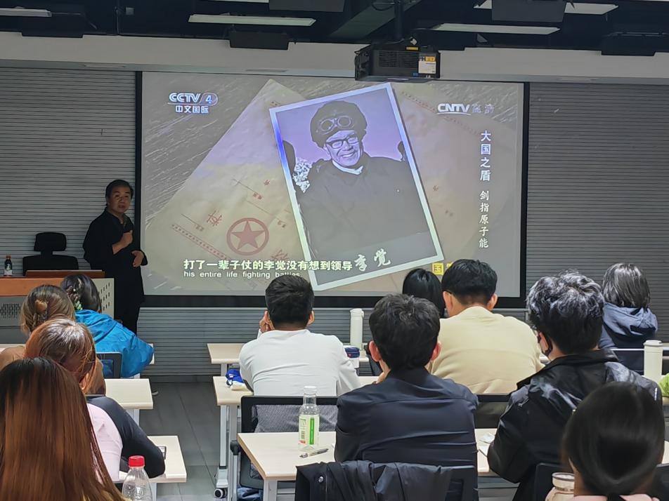 围绕一幅红色胸签,借助直观的历史图像和记录片视频,王学军老师用生动的讲述、故事性的语言为同学们展示陕北公学的沿革与发展,强调新时代的人大学子正在传承陕北公学同学的治学态度和革命精神,在党的领导下,继续担负时代责任,不负人民嘱托。