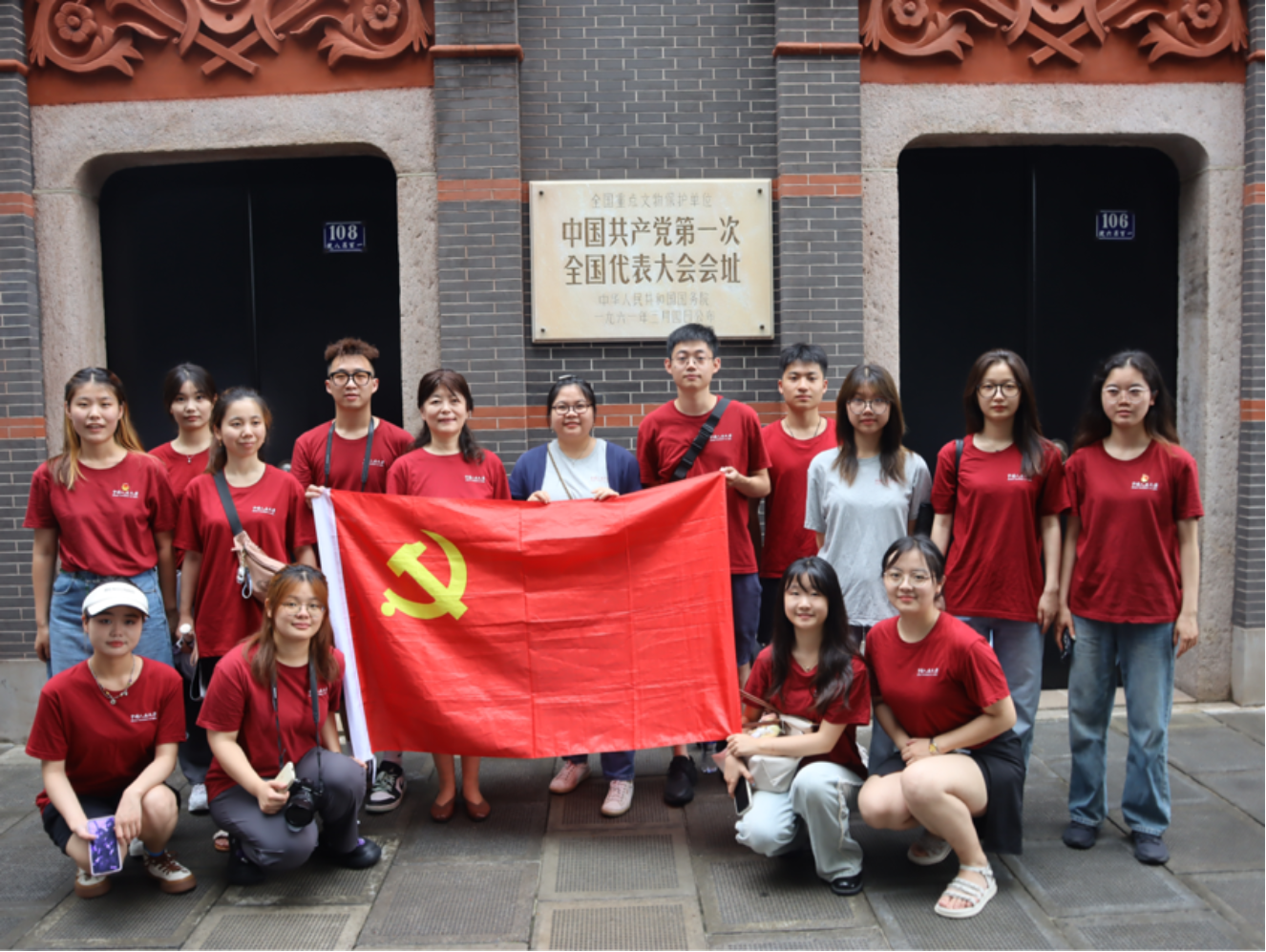 “一个有希望的民族不能没有英雄,一个有前途的国家不能没有先锋。”7月1 日,为庆祝中国共产党成立102周年,实践团前往中国共产党第一次全国人民代表大会纪念馆,回顾红色历史,传承红色精神,坚定初心使命,锤炼政治品格。在这一方空间里,青年学子们仿佛跨越百年时间与先辈们坚定的眼睛对望,赓续红色血脉,传承红色基因。纪红波作为领誓人,带领党员同志们在党旗前庄严宣誓,重温入党誓词。青年强则国家强。