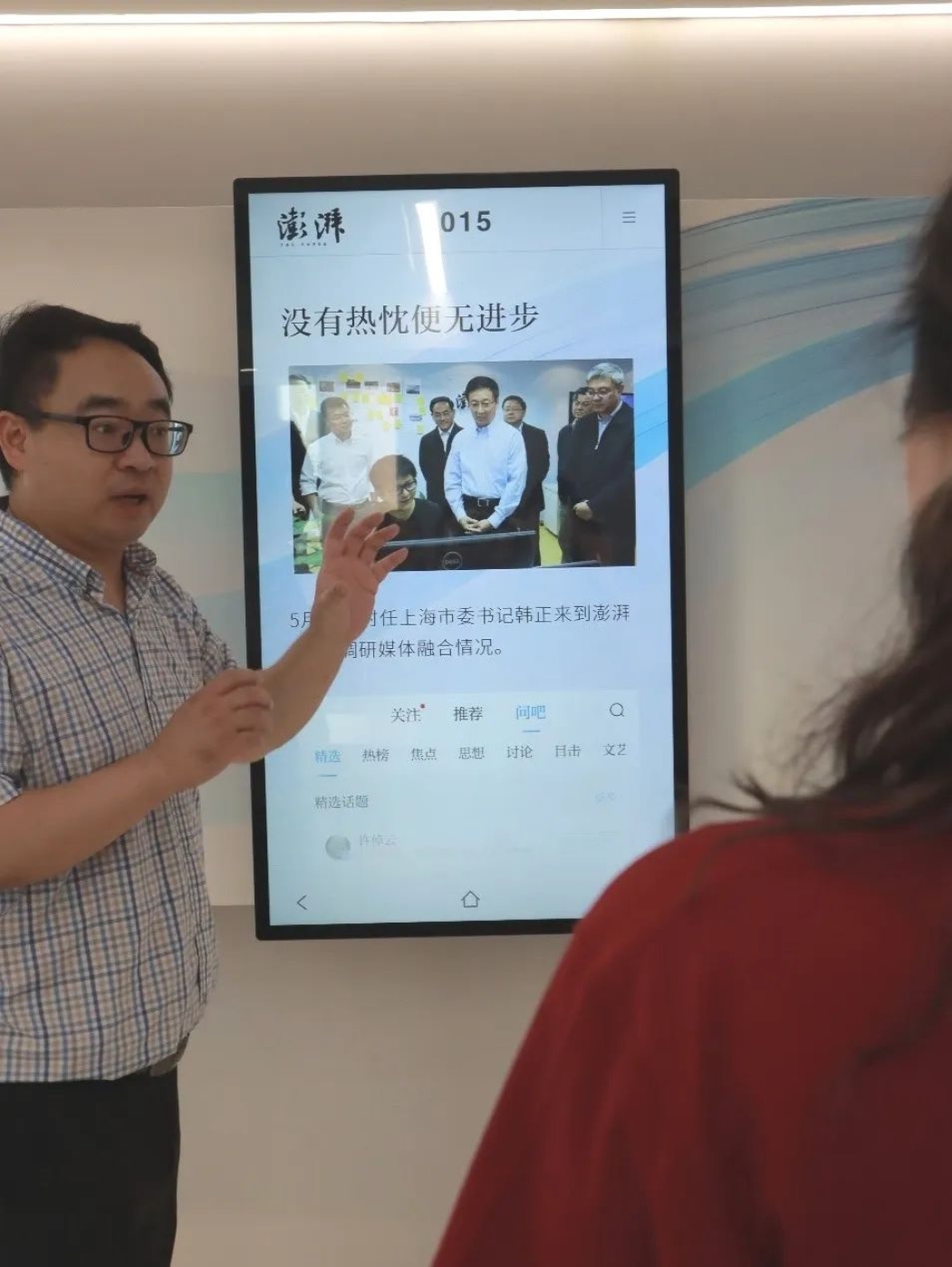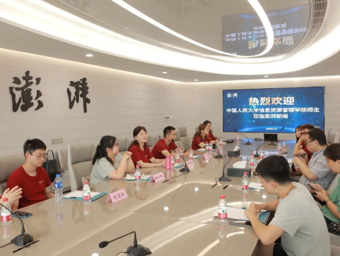 7月2日,青年学子前往澎湃新闻,在数据大厅内,实时更新的数据大屏向大家展示了澎湃新闻今日的实时阅读量、粉丝数、热搜榜等,用技术记录着每分每秒的澎湃。澎湃新闻网政治新闻部总监、港澳台新闻部总监、主任记者、公司2005届员工陈良飞向大家介绍了澎湃新闻一路以来的发展历程。陈良飞阐释了自己对档案学与新闻学之间关联的理解,“新闻即是对信息的挖掘、发现和比较,监控、分析、采访完美结合,才能诞生一个完整的新闻报道。希望青年学子们注重信源的作用,为未来打下基础;重视阅读的力量,综合掌握各类知识,因为知识是做新闻的支撑;把握规律,注重细节,须臾不能出错;做卓越的记者,需要有强项,把一个领域做到极致。”员工是青年学子们学习的榜样,青年学子们应砥砺前行,争做开路先锋、事业闯将。